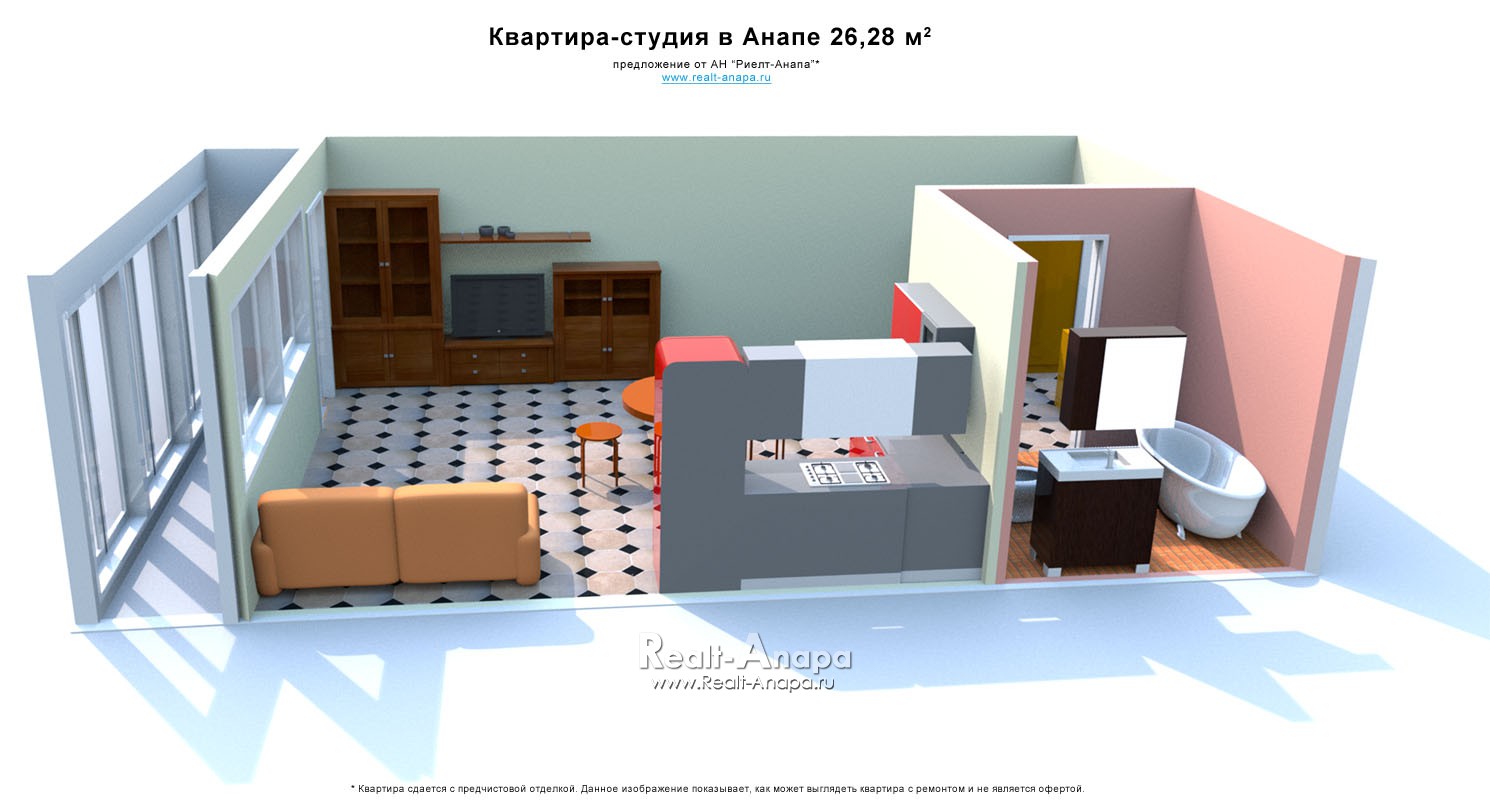 Квартира, расположенная по адресу: г. Анапа, ул.Владимирская, в 900 метрах от побережья Черного моря.